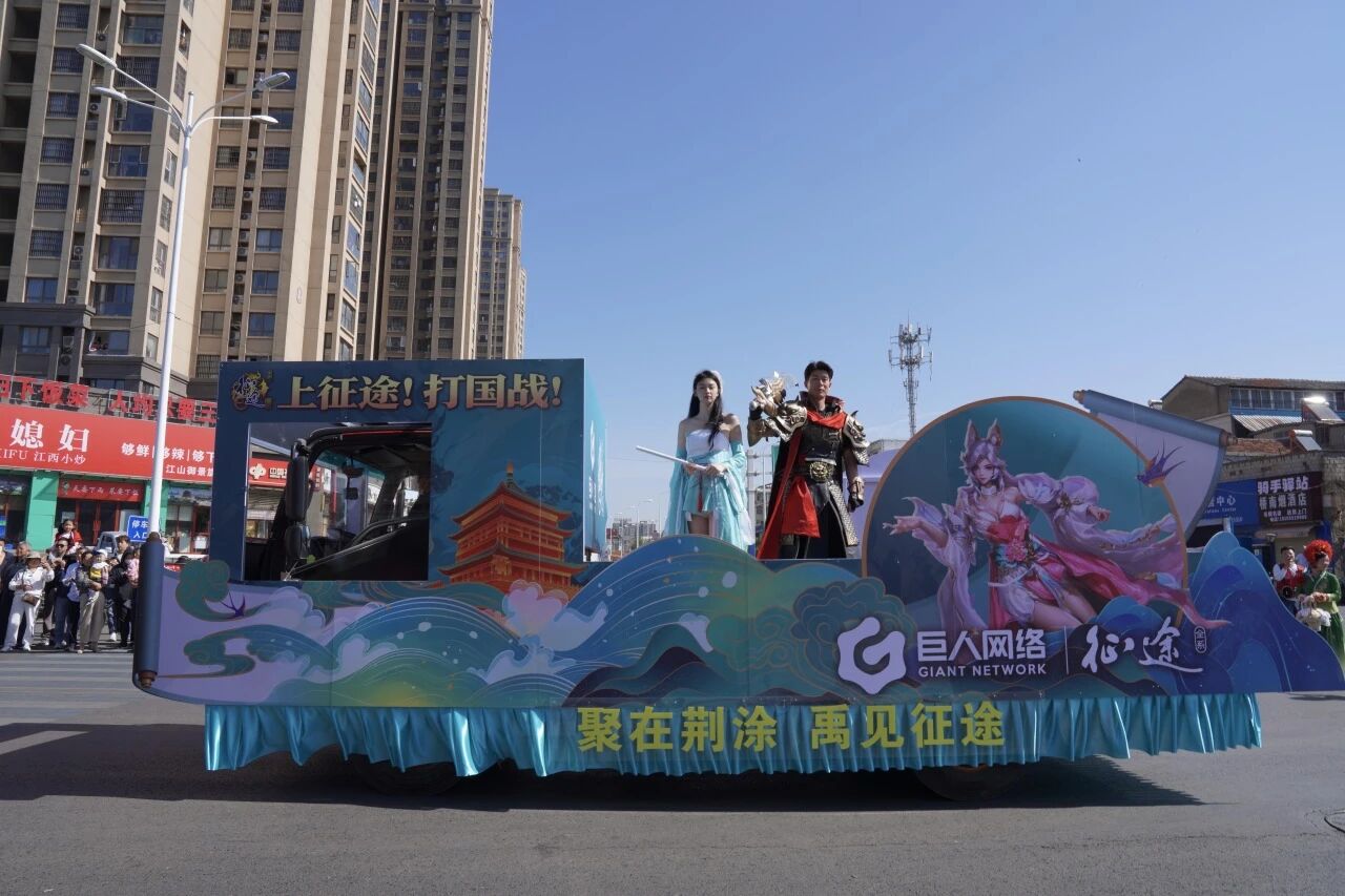 在线下活动中,征途深度参与怀远县第三十四届花鼓灯艺术节暨文化旅游消费季活动,以主题花车巡游、游戏角色coser互动亮相,吸引众多游客参与互动,实现虚拟游戏与现实文旅的无缝衔接,展现游戏魅力与怀远文化韵味。